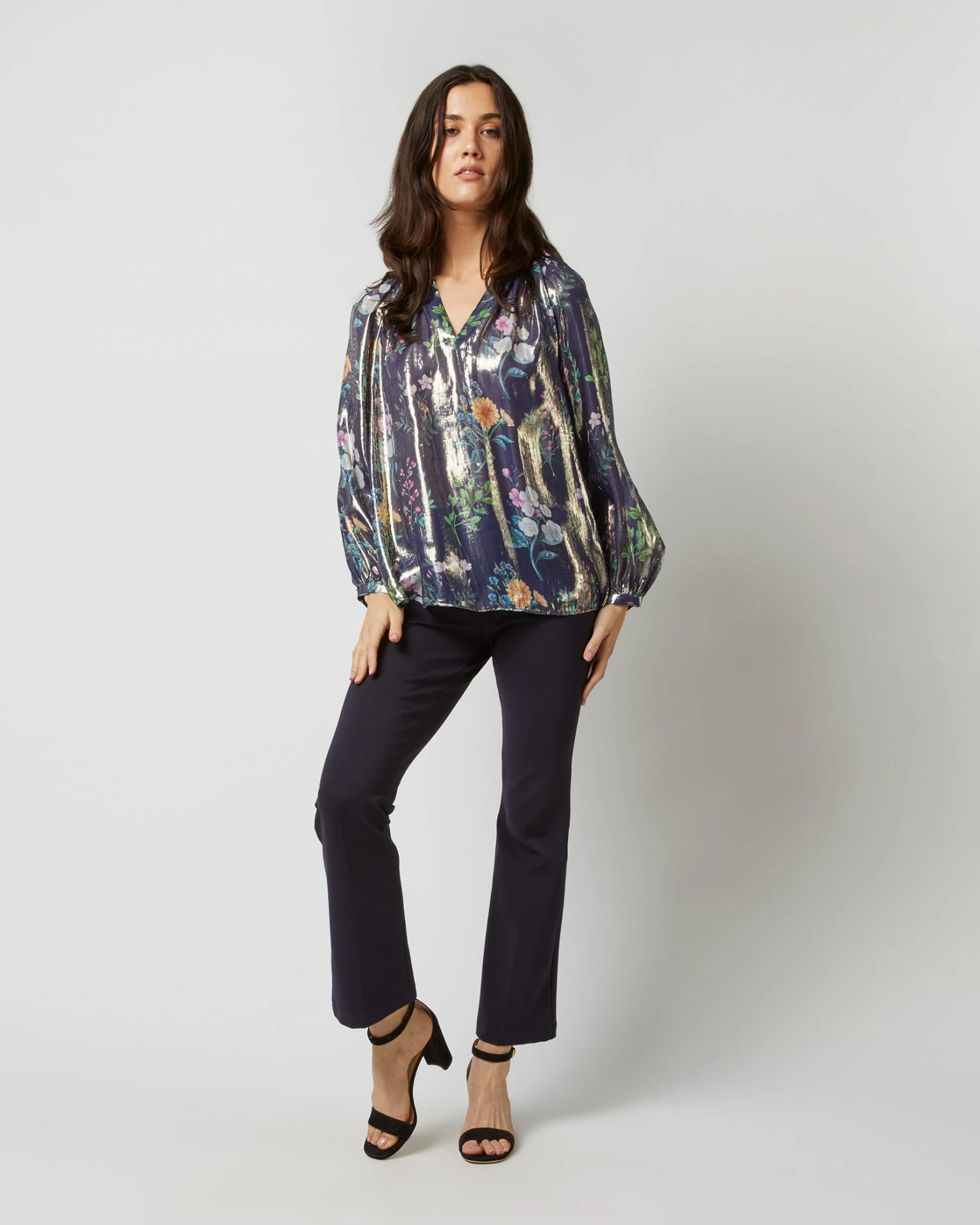 Ariana Blouse In Navy/Metallic Floral Academy Liberty Fabric Lamé