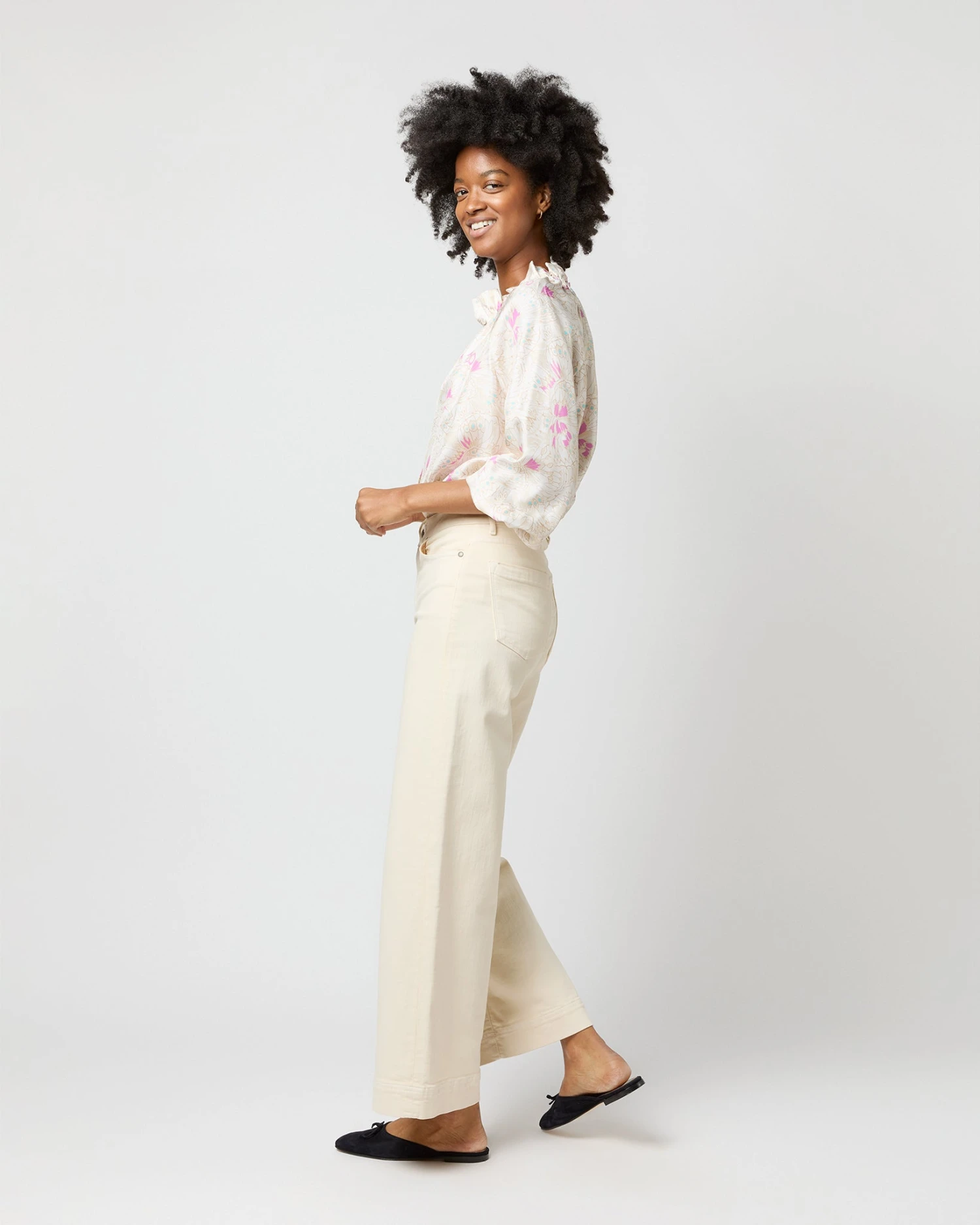 Very much a twist on a “button-up blouse,” this is a slightly less-sweet version of our hit Kamille shape. It’s got covered buttons down the front, plus the same elasticated neckline and wrists as the original for an easy, adjustable fit. This one’s made of silk twill from Italy with the prettiest, subtlest butterfly print.