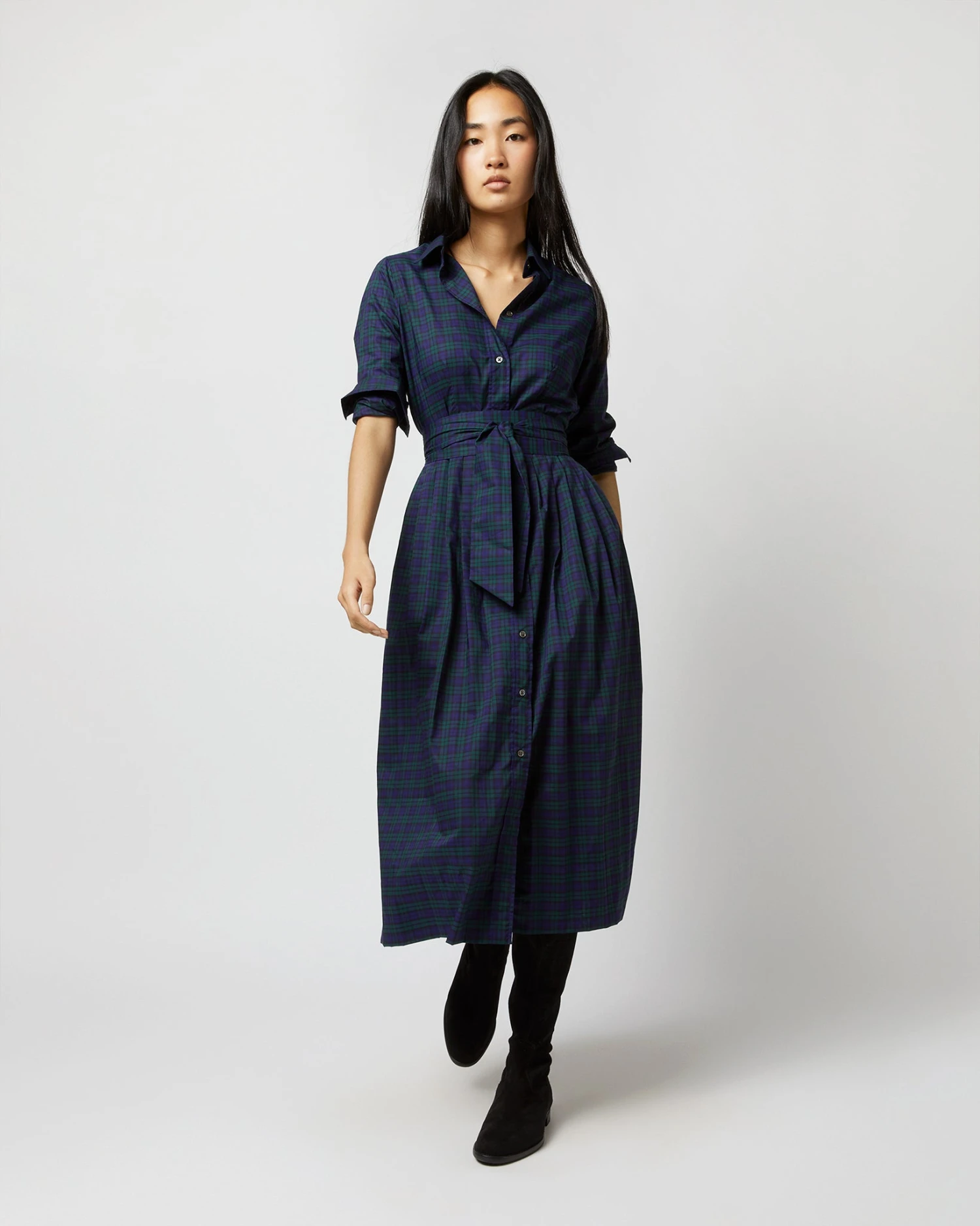 Classic Shirtwaist Dress In Blackwatch Poplin