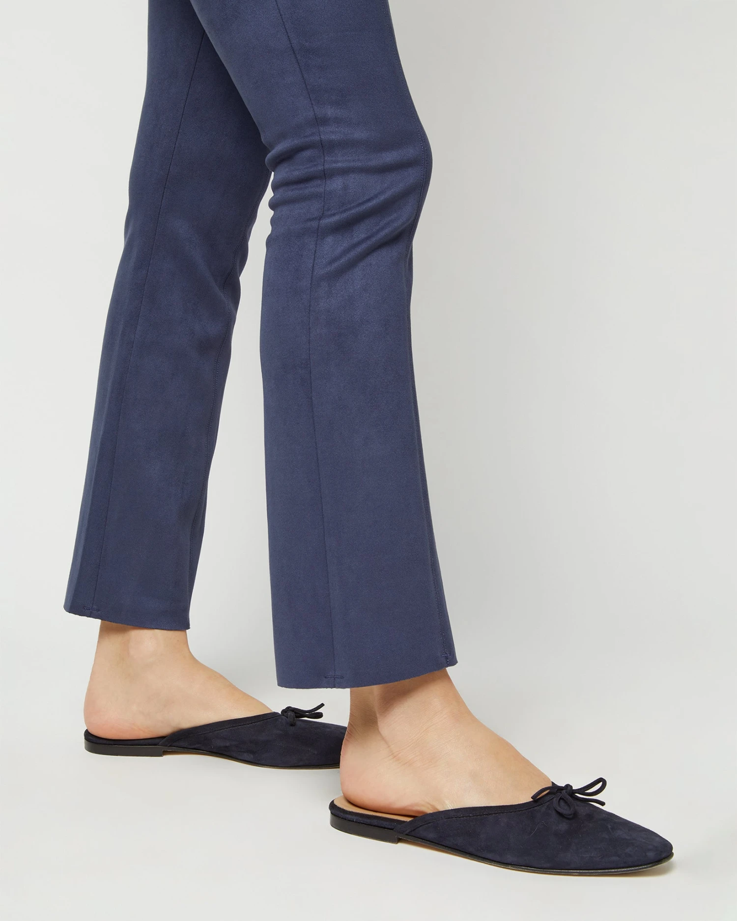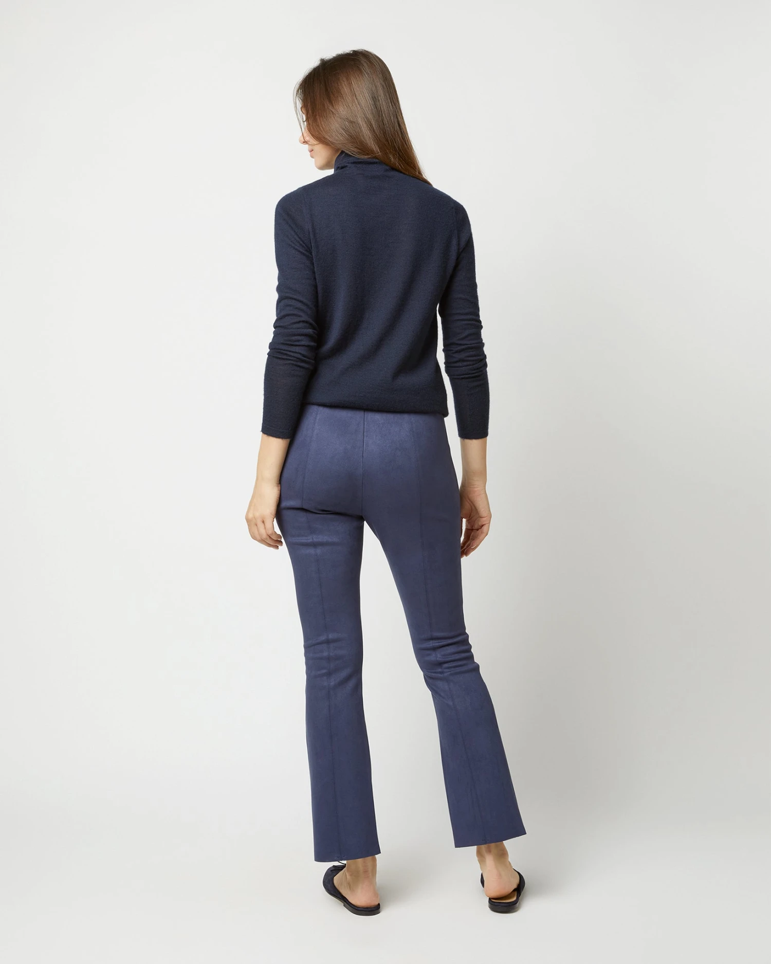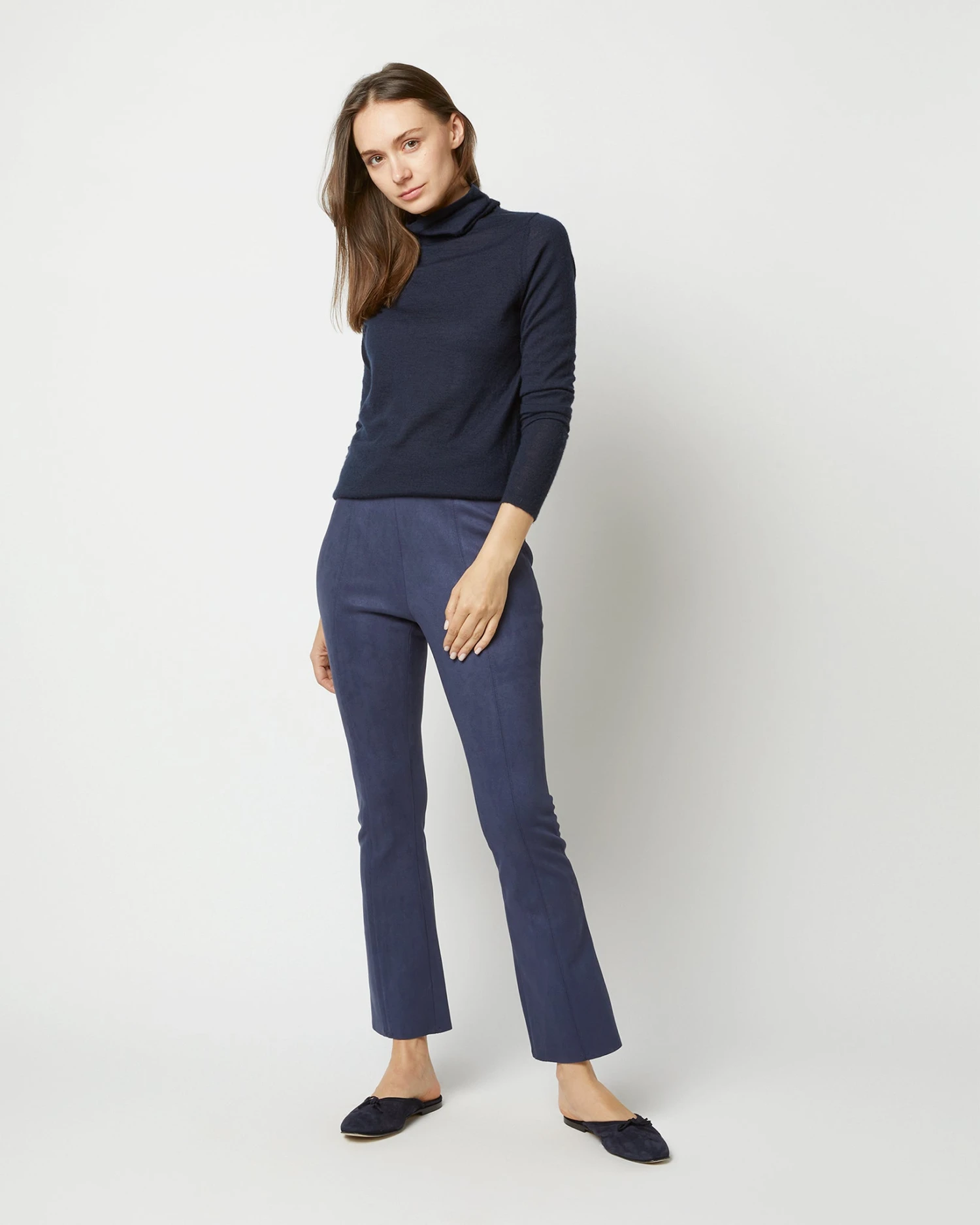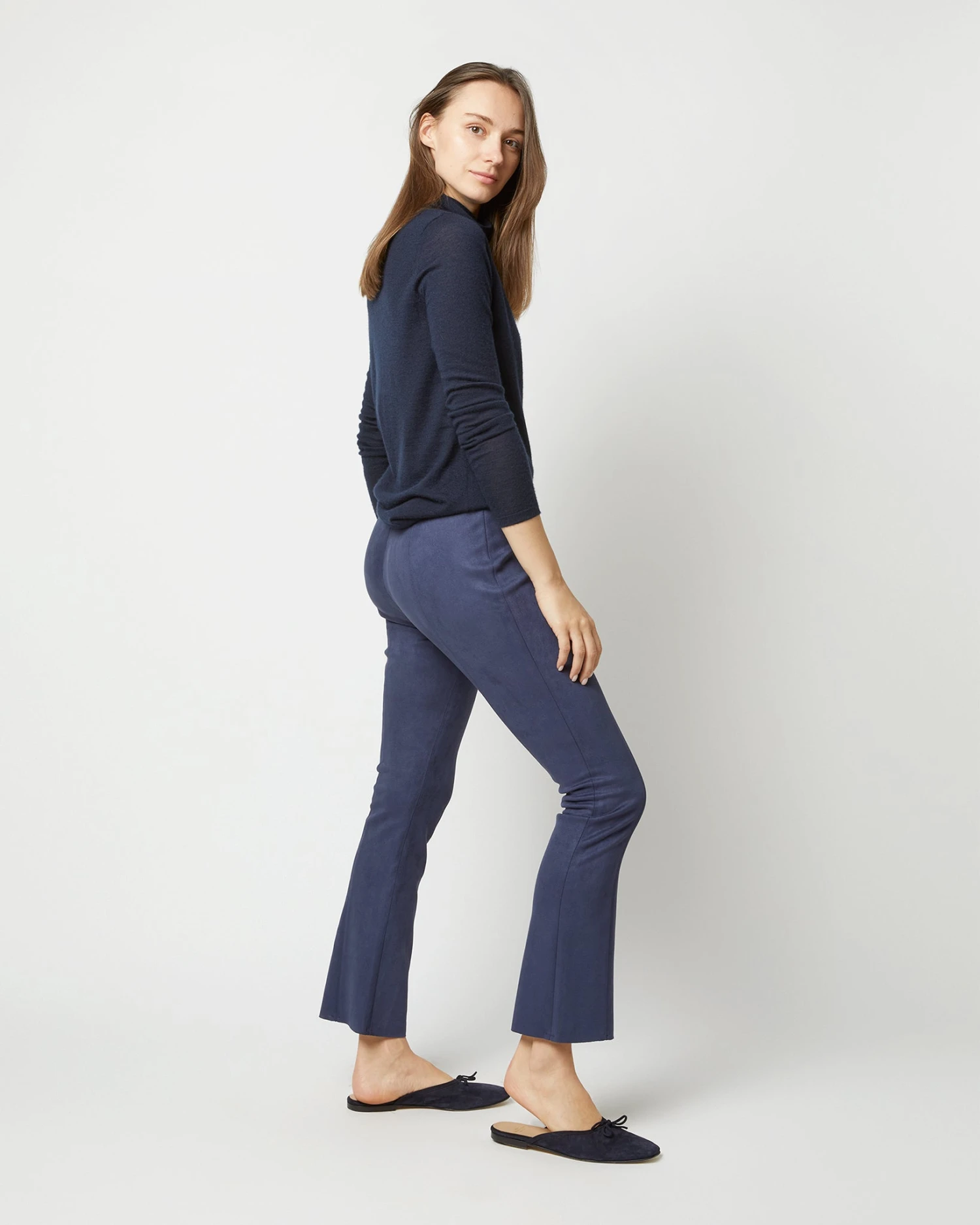 Faye Flare Cropped Seamed Pant In Navy Vegan Suede