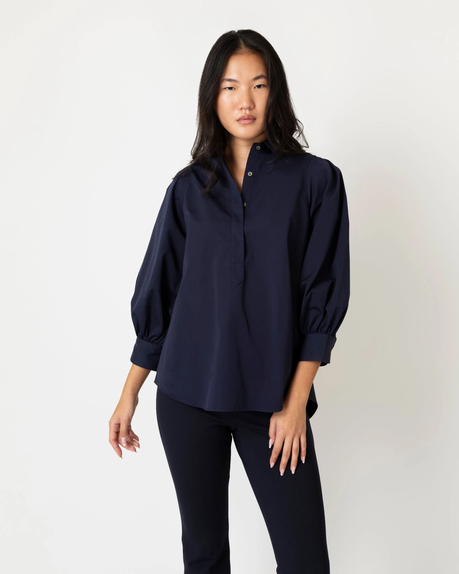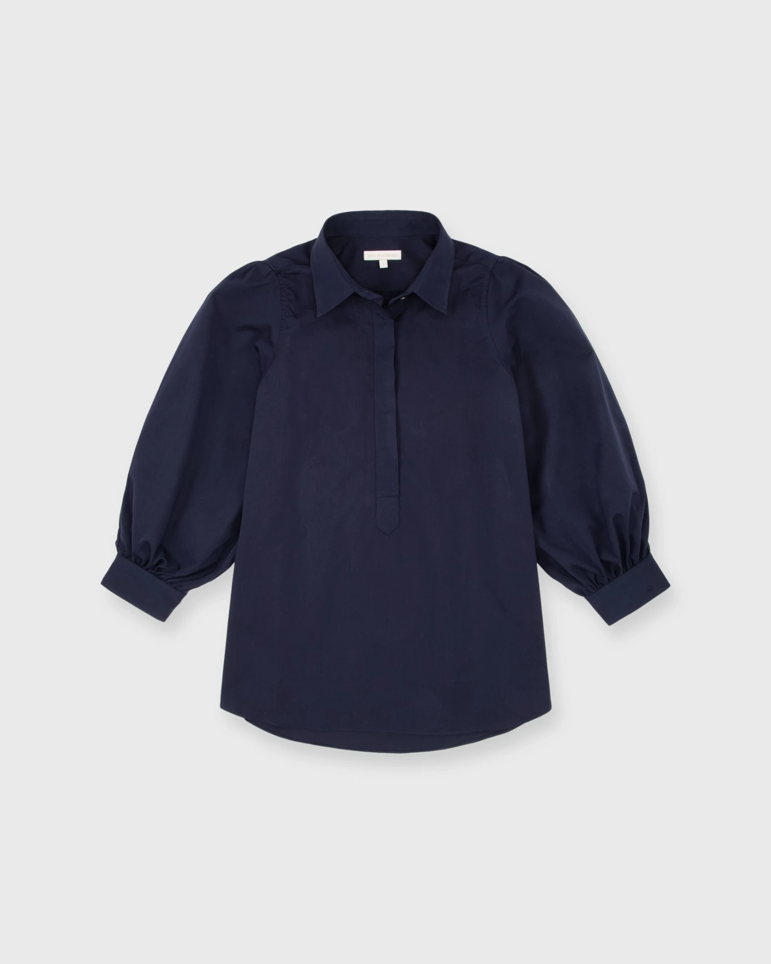 Geraldine is our latest favorite in the “romantic, puff-sleeved shirts” category. This one’s different, we promise! And already a hit. The sleeve hits higher on the shoulder than the Anaya or the Paulina and has more gathers at the top, which means it’s a more flattering way to do the volume trend for those with a broader build. It’s also got a covered popover placket and a rounded, high-low hem. This one’s made of crisp, silky 2ply Italian poplin and almost certain to be one of the more feminine shirts in your closet.
