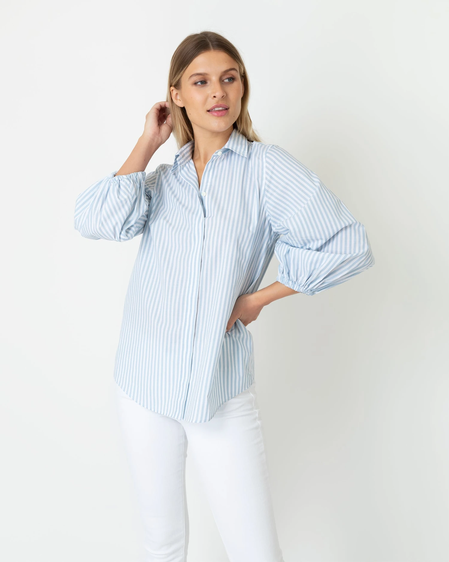 Isla Shirt In Steel Blue/White Stripe Chambray