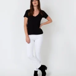 Our boatneck tee is a real closet MVP. It’s refined enough to dress up with a blazer, but also trim enough to layer under an oversized button-down, tuck into a full skirt, or wear with every pair of jeans you own. We could go on, but you get it. This one is made of combed Peruvian pima cotton that’s not too tissuey and not too thick.