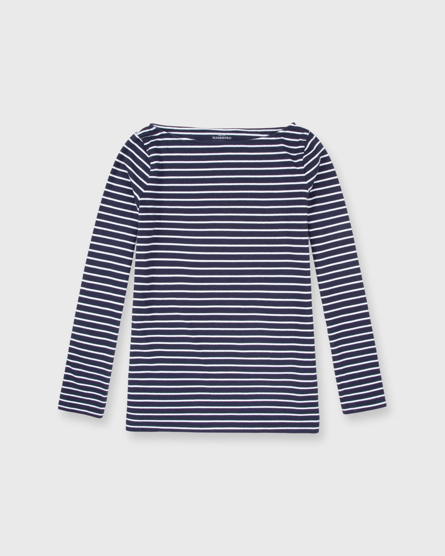 Long-Sleeved Boatneck Tee In Navy/White Stripe Jersey
