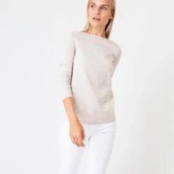 Be the first to review “Long-Sleeved Boatneck Tee In White/Navy Stripe Compact Jersey” Cancel reply