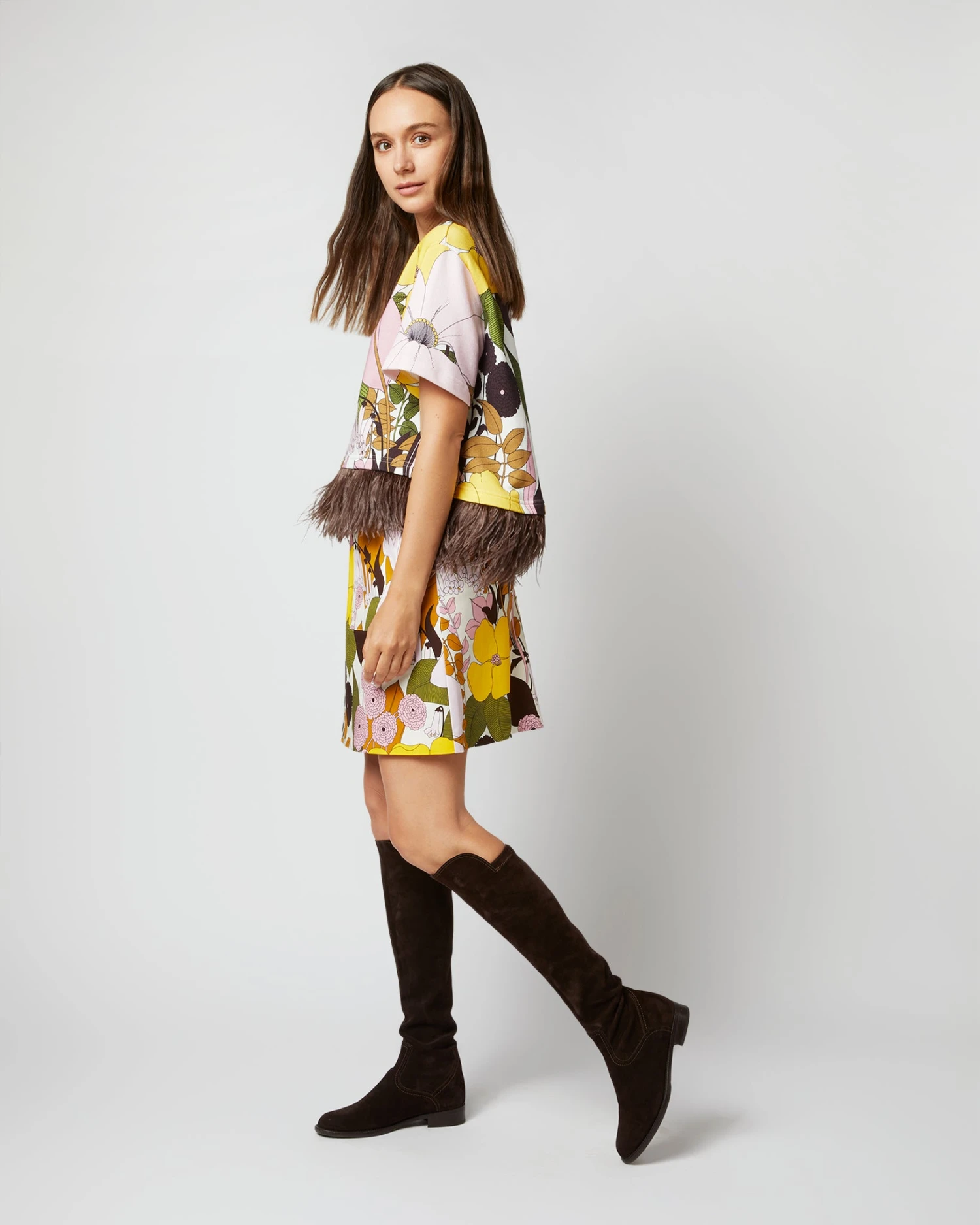 Milan-based La DoubleJ makes party-ready skirts and dresses in reissued vintage fabrics, “distilled through a lens of pure joy, eye-popping print and love of all things maximal.” Sounds about right! This skirt has a mini-hem and an A-line shape with retro patch pockets at the hip. It’s made up in a heavy cotton with a little stretch, and if you want to take it up a notch, there’s matching, feather-trimmed top. Life of the party.