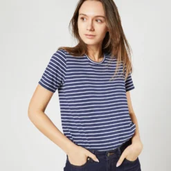 Short-Sleeved Relaxed Tee In Navy/White Stripe Jersey