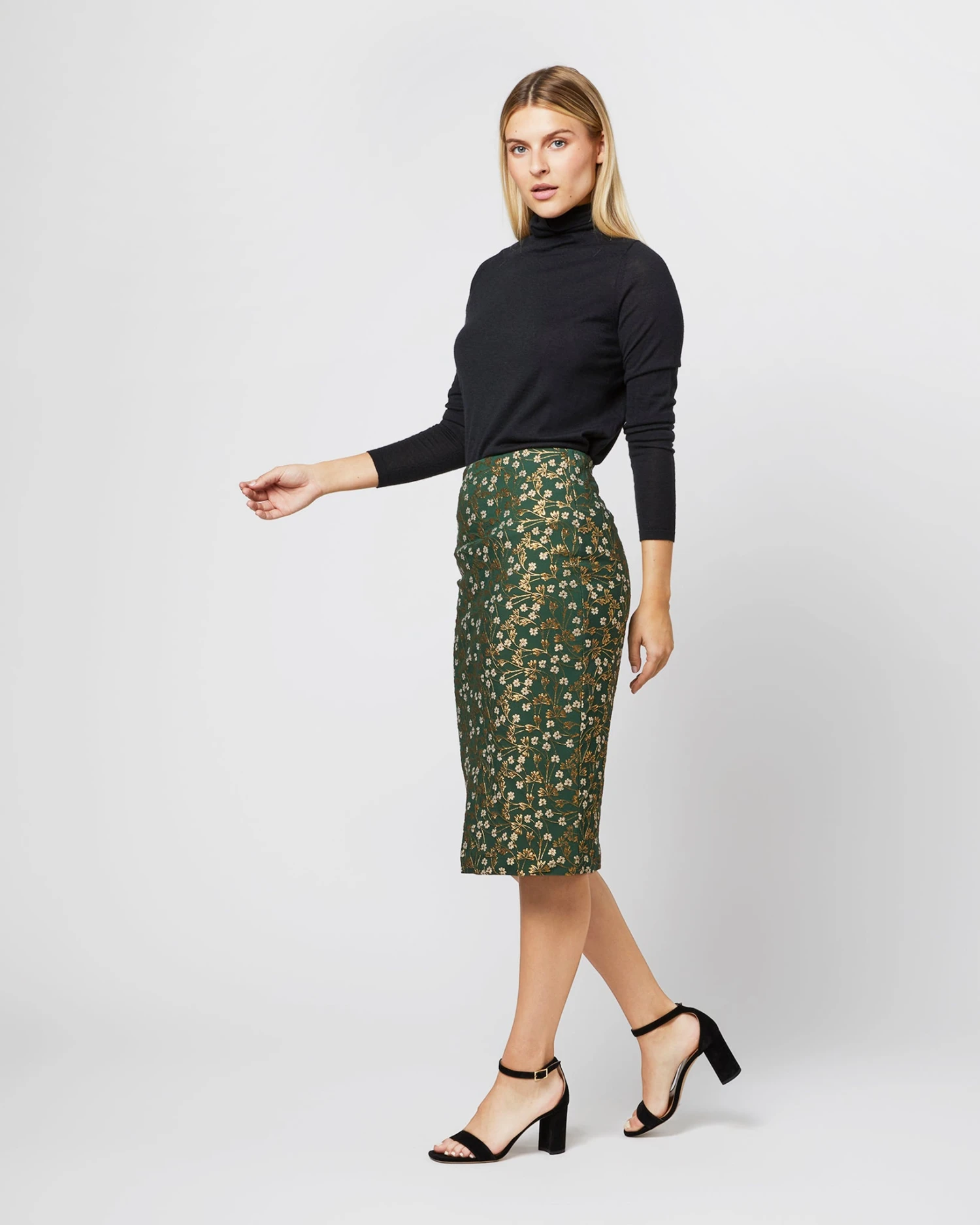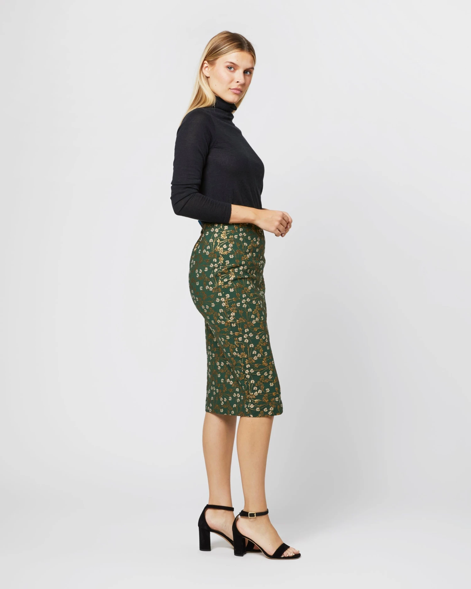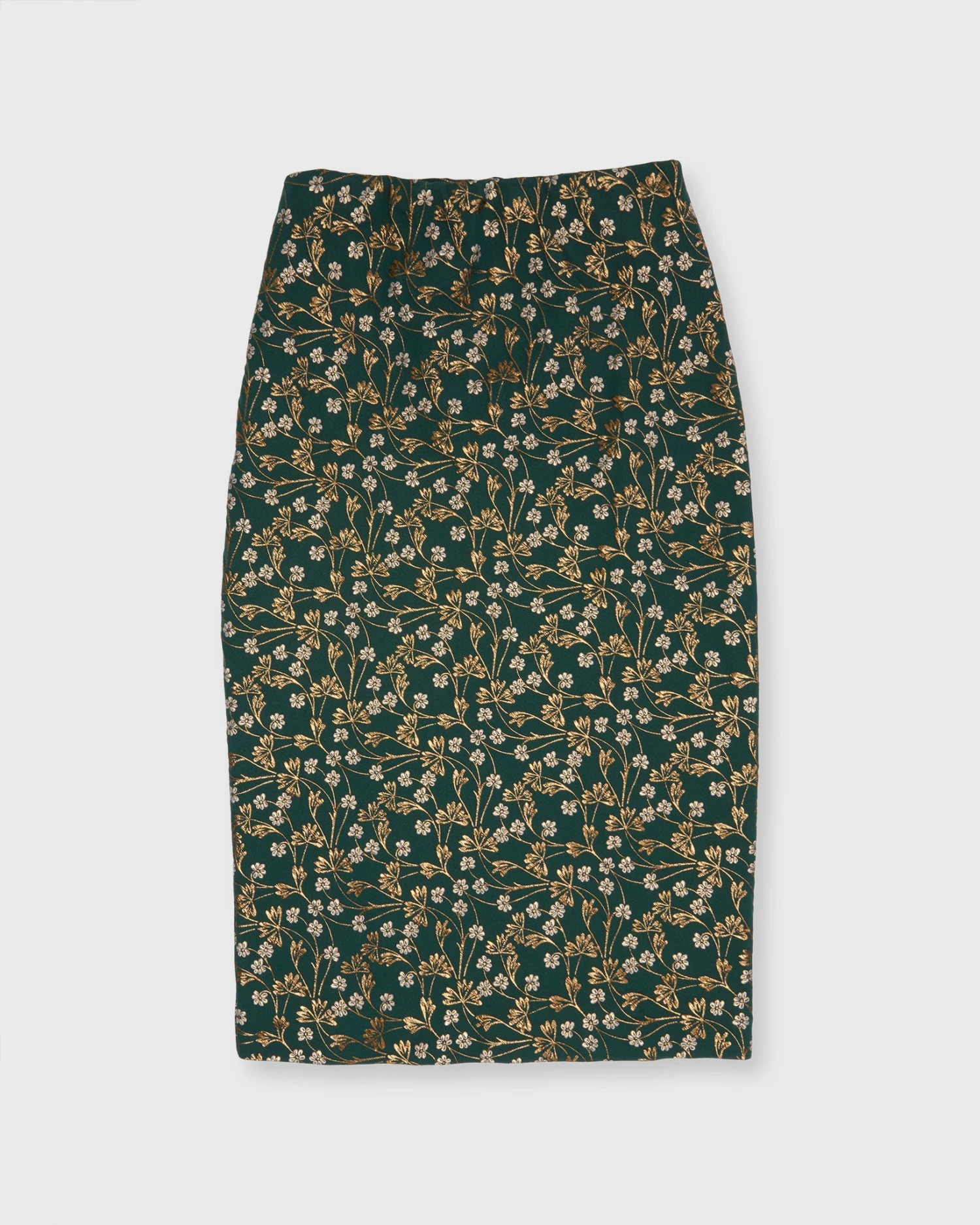 Pull-On Skirt In Hunter/Gold Floral Jacquard