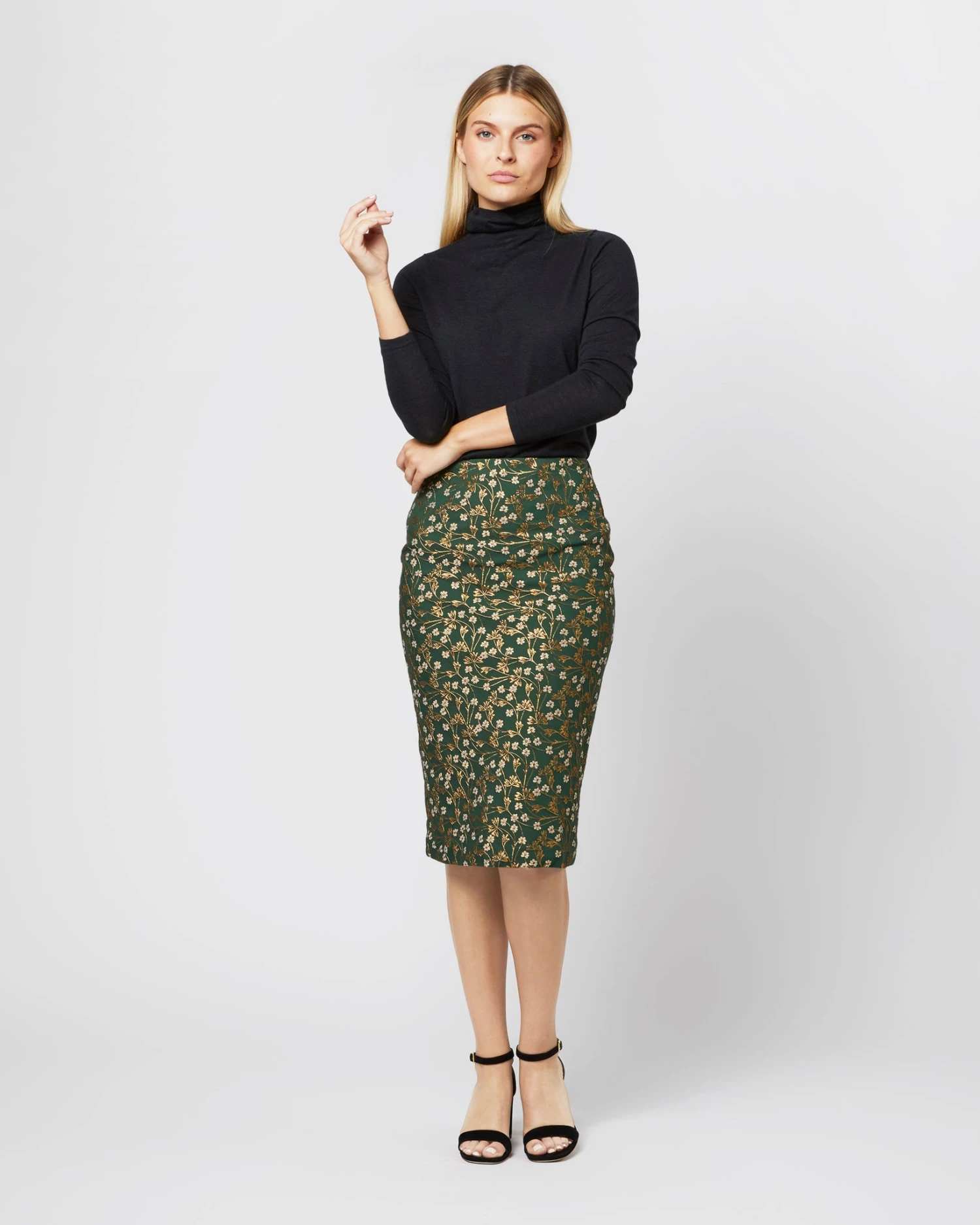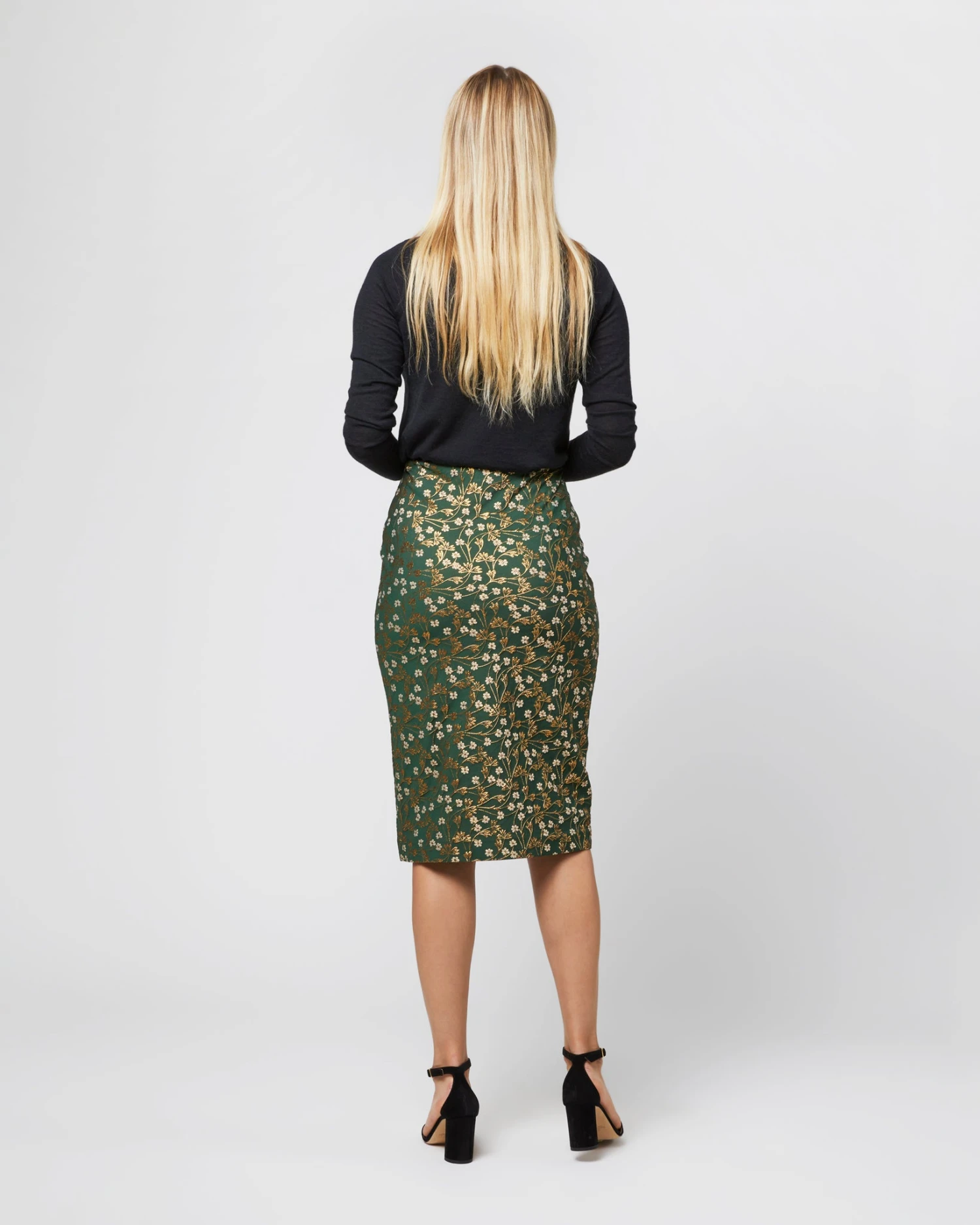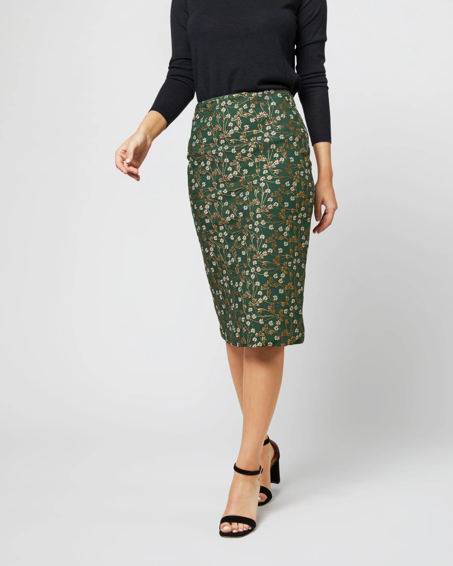 Pull-On Skirt In Hunter/Gold Floral Jacquard