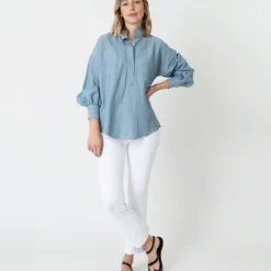 We don’t need to tell you how useful a plain, well-cut, V-neck tee is, do we? The neckline of this one is deep (not plunging) and a little bit rounded for a soft, flattering effect. It’s made of pima jersey that’s lightweight enough to layer, but substantial enough to stand on its own. Pima’s like the cashmere of cotton. It only gets softer — without pilling, without clinging — the more you wear it.
