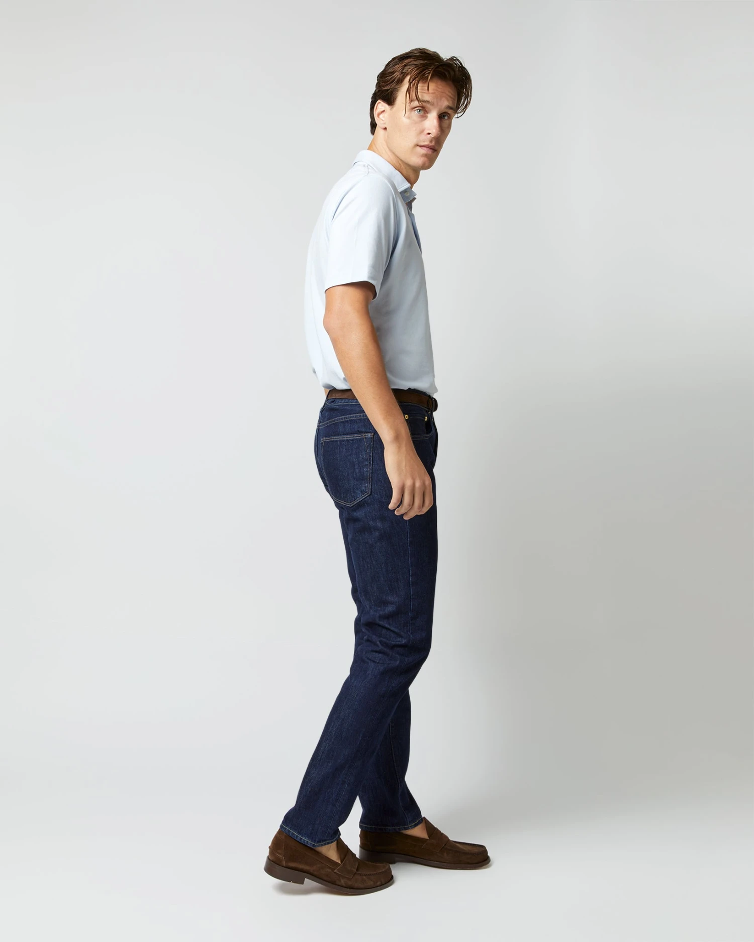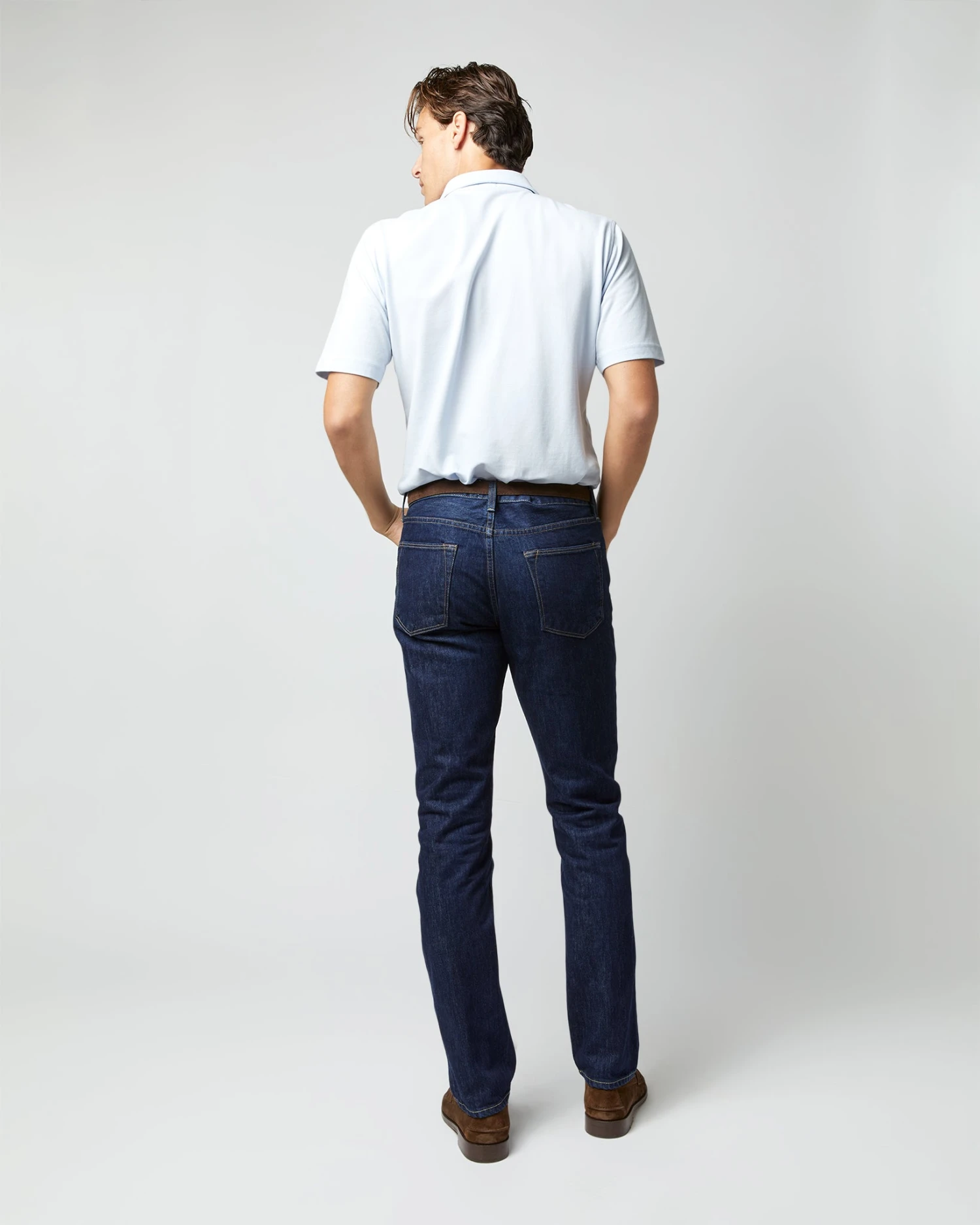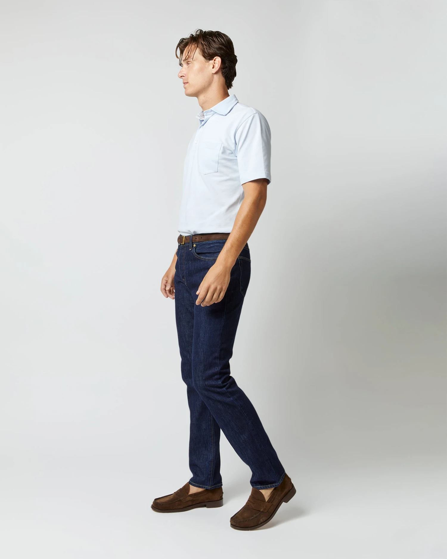 A polo’s one of those things that almost everyone’s got in his closet, but we think ours is kind of special. It’s got a cut-and-sew collar supported by a collar band (just like a sport shirt, which means it can stand up under a jacket,) a tennis tail that can go tucked-in or not, and no branding except for a tiny SM at the lower left hem embroidered in green. This one’s made from Peruvian pima pique that’s airy and rugged at the same time. Pima’s like the cashmere of cotton. It only gets softer — without pilling, without clinging — the more you wear it.