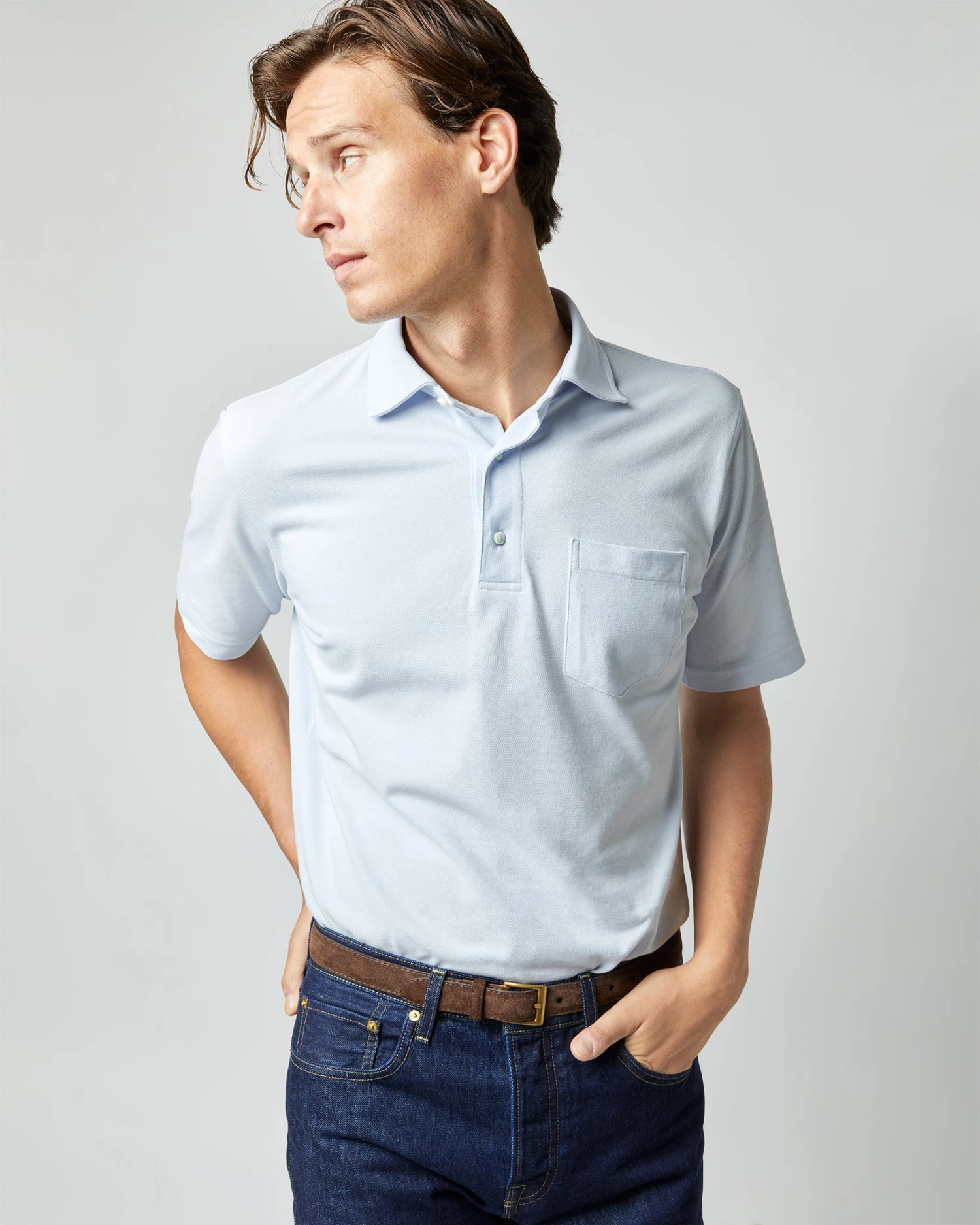 Be the first to review “Short-Sleeved Polo In Pale Blue Pima Pique” Cancel reply