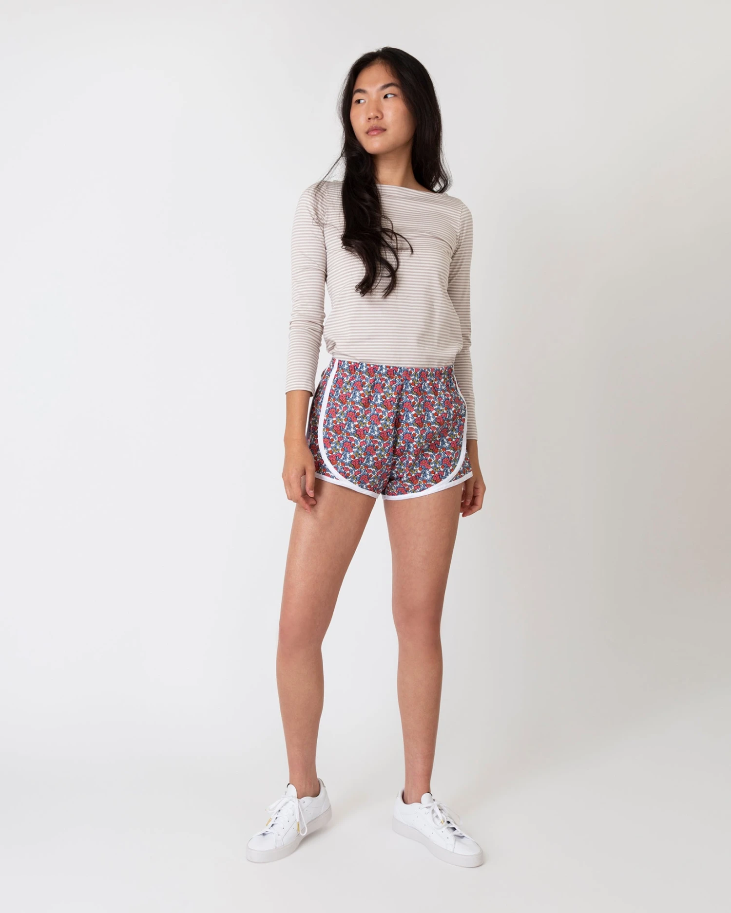 Made famous by athletes, made adorable by us. We used printed Piccadilly poplin from Liberty Fabrics for an easy, super-lightweight, woven track short that’s perfect for kicking around on the weekends… or even for actual sports. (This cotton quality is fine, smooth, and a touch heavier and more opaque than the classic Tana Lawn® we use for some of our other track shorts.) Each pair comes in a matching pouch that can be repurposed for phone chargers, medication, or other knickknacks when you travel. And if you’re buying for someone else — it’s one of Ann’s go-to gifts — the bag is cute enough to act as its own gift wrapping.