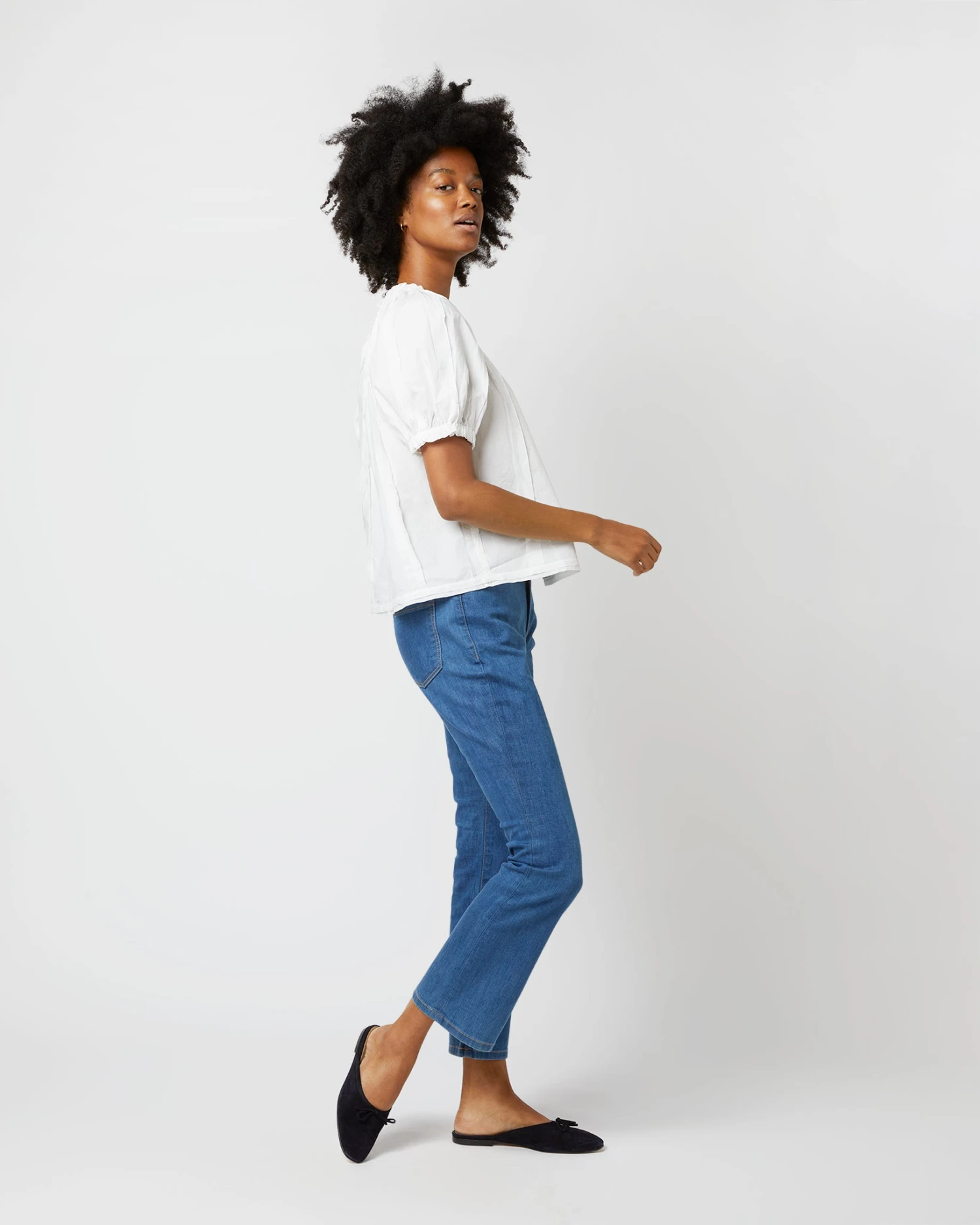 In-store favorite Ulla Johnson makes feminine, bohemian pieces that are heavy on handcraft and special details. The Lora top is made up in white cotton poplin with puffed sleeves, a pleated bodice, and delicate ruffles along the neckline and cuffs. Itβs designed for a slightly loose, easy fit.
